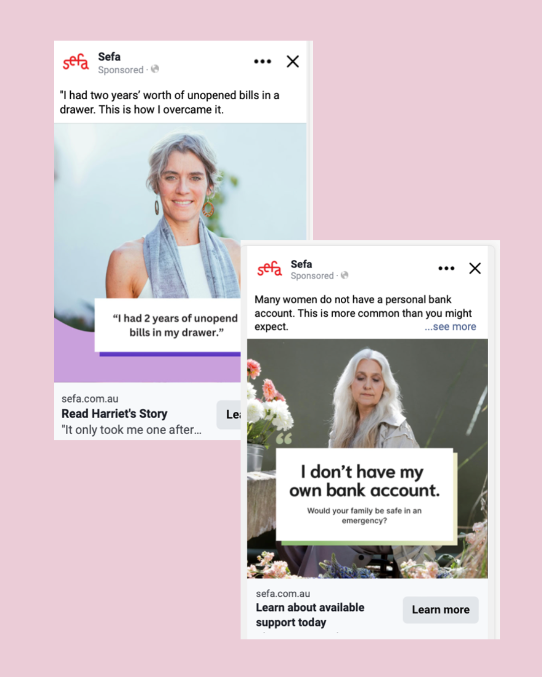 In early 2025, we ran a small national social media pilot campaign to test the concept. We shared stories of financial avoidance, drawn from women's lived experiences captured during the research phase, and directed women across Australia to resources that could help them take action.